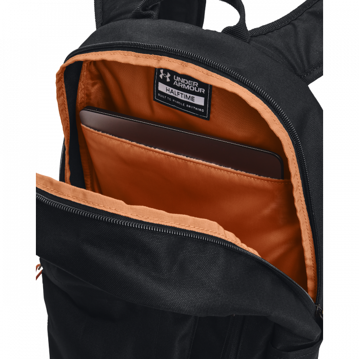 Batoh Halftime je prémiový doplněk vyrobený z kvalitních materiálů, který se hodí na každodenní nošení a sportovní aktivity. Zdobí ho logo s nápisem Under Armour a disponuje technologií UA Storm. Díky ní se hodí do každého počasí, protože odpuzuje vodu. Ochrání tak vaše věci před namočením nebo vlhkostí. Batoh Halftime kromě toho nabízí různé kapsy a jednu polstrovanou kapsu, do které si můžete bezpečně uložit laptop s úhlopříčkou 15".