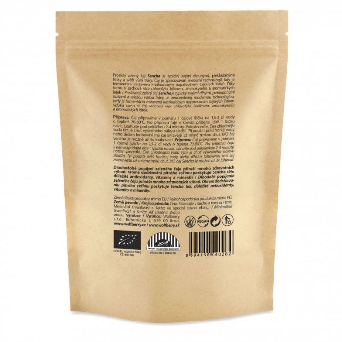 BIO Zelený čaj Sencha je druh zeleného čaje, který je plný antioxidantů, vitamínů a minerálů. Je typický svou lahodnou chutí a jemnou zeleno-žlutou barvou.