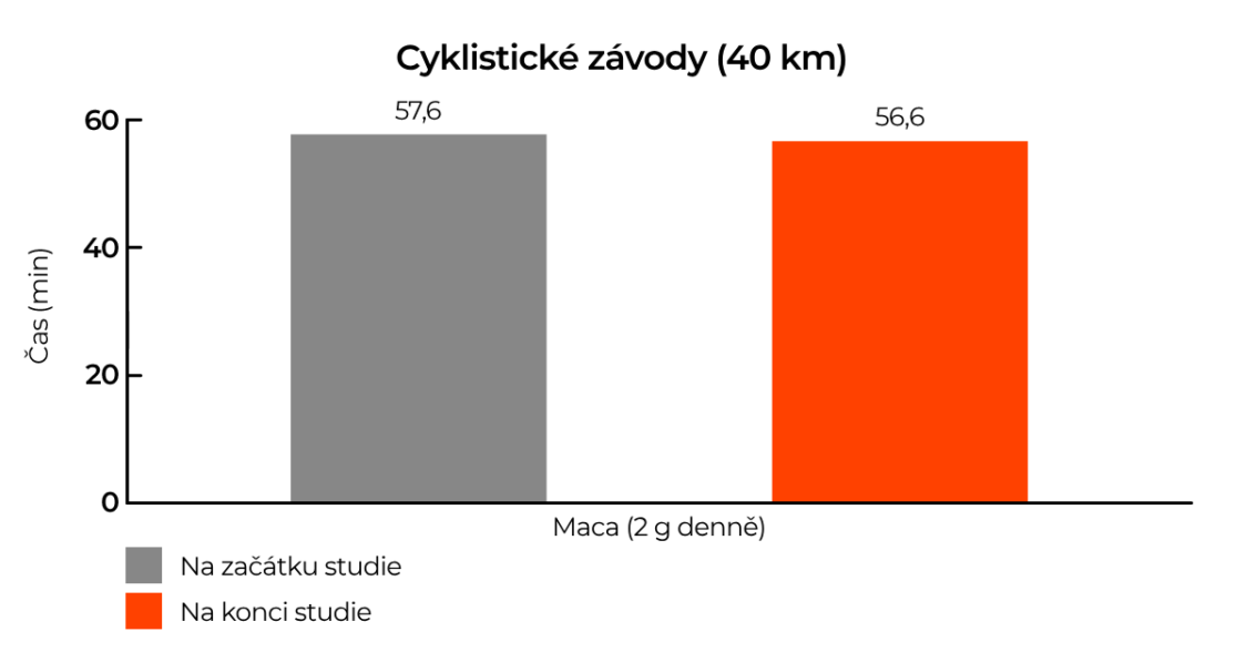 Cílem bylo zjistit, zda má maca vliv na jejich cyklistický výkon. Proto před začátkem každé fáze absolvovali 40 km závody a zopakovali si je i po jejím skončení. Ukázalo se, že čas závodu byl lepší po užití macy než bez ní. Výkon se zlepšil v průměru o celou minutu. To se sice může na první pohled zdát jako zanedbatelné množství, ale ve skutečnosti se při vytrvalostním závodě počítá každá sekunda. [14]