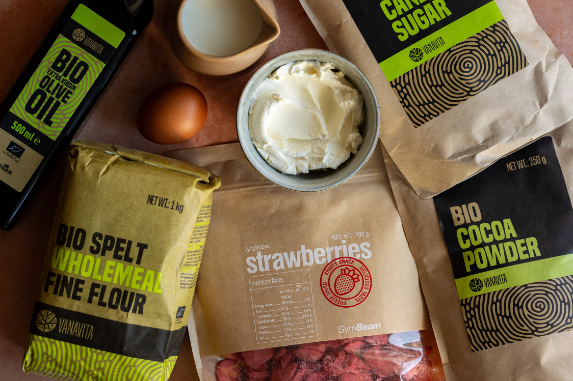 V mezičase, kdy se těsto peče, si připravíme krém. Lyofilizované jahody rozmixujeme na prášek, trošku si odložíme na závěrečné posypání, a zbytek promícháme se smetanovým sýrem i javorovým sirupem. Pomocí cukrářského sáčku vychladnuté cupcaky zdobíme. Na závěr je ještě posypeme jahodovým práškem a můžeme s láskou podávat