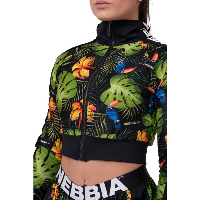 Dámská mikina Cropped High Energy je povedený sportovní kousek, který vám udělá skvělou službu při intenzivních trénincích i jiných volnočasových aktivitách. Materiál je ze 75 % tvořený recyklovaným polyesterem, který se spolehlivě postará o odvod potu. Navíc je na těle velmi příjemný. Pružnost má pak mikina díky 25 % elastanu, ten zároveň zajistí, že se tento kousek skvěle přizpůsobí vaší postavě. Kromě designu s motivy přírody si zamilujete i její střih. Ke krku se zapíná na zip, délka je však pouze do pasu. Díky tomu můžete ostatním ukázat břišáky, na kterých jste dlouhou dobu pracovaly. Mikina nemá kapuci, takže se nemusíte bát, že by vám při cvičení zavazela. Díky nápisům NEBBIA dáte svému okolí jasně najevo, že na sobě makáte.