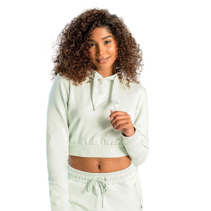 Tato mikina má moderní zkrácený střih a minimalistický design, který podtrhují decentní nápisy a logo STRIX. Skvěle se hodí k legínám nebo teplákům s vysokým pasem. Kratší střih mikiny zvýrazní váš úzký pas a budete se v ní cítit sebevědomě na tréninku v posilovně, ale také ve volném čase.