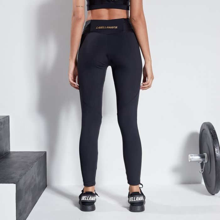 Dámské legíny Allure Black jsou fitness legíny s vyvýšeným pasem, který je v zadní části doplněn o zlaté logo značky LABELLAMAFIA. Legíny jsou vyrobeny z mimořádně pohodlného, ale zároveň elastického materiálu, který zvýrazní vaše ženské křivky. O maximální prodyšnost a odvádění potu či vlhkosti během tréninku se postará inovativní jemná síťovina v oblasti stehen. Ciťte se při cvičení, běhu, cyklistice, józe či pilatesu pohodlně s legínami Allure Black!