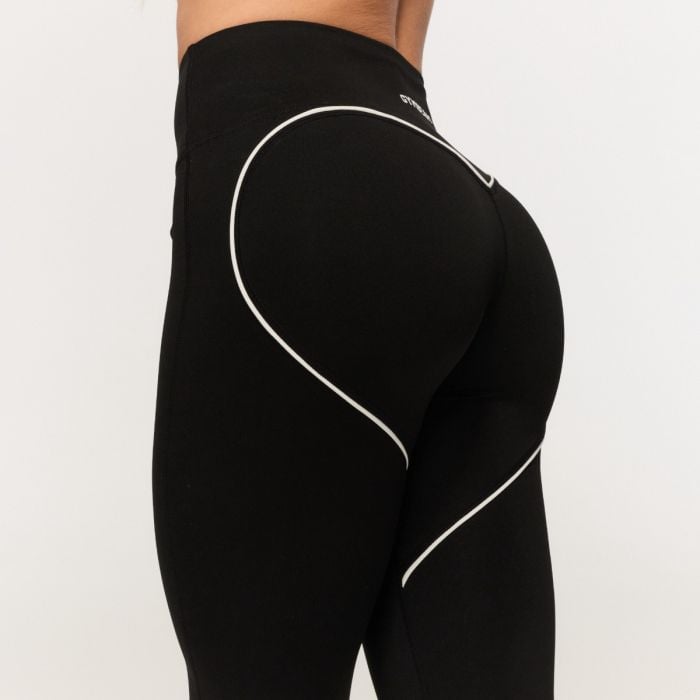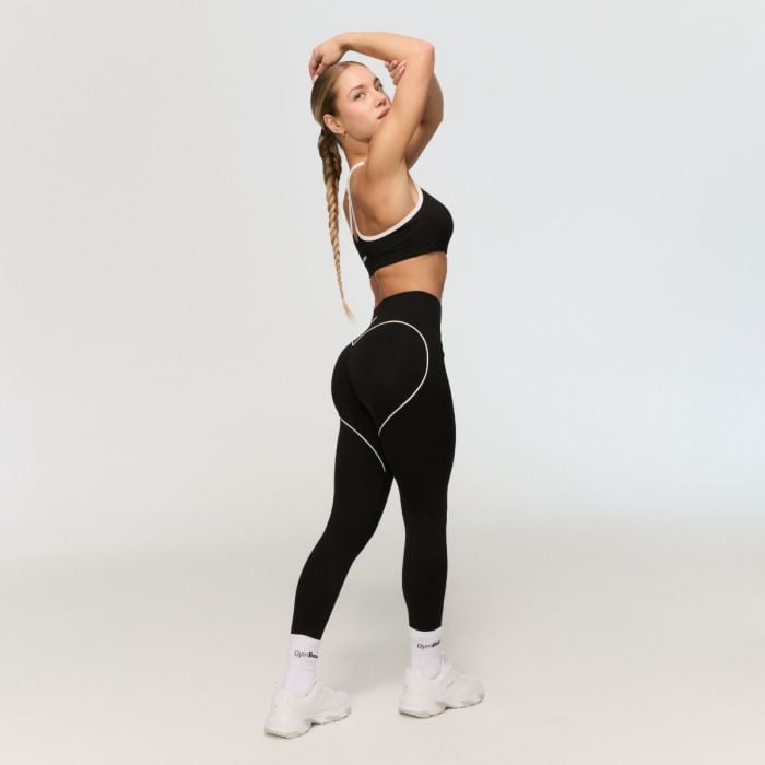 Tento sportovní kousek se vyznačuje dlouhým střihem, který se dokonale přizpůsobí vaší postavě. Vysoký pas zaručuje, že oblečení spolehlivě drží na svém místě a neklouže ani při hlubokých dřepech. Konstrukce bez předního švu a bez kapes zajišťuje maximální pohodlí bez nepříjemného zařezávání nebo tření. Naprostou dominantou je velké kontrastní lemování ve tvaru srdce na zadní straně tvořené tenkými bílými proužky. Tento detail opticky tvaruje pozadí a dokonale zvýrazňuje vaše přirozené křivky.