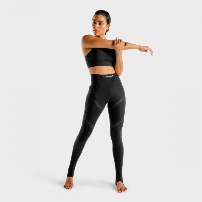 Dámské legíny Wolf Onyx - fitness legíny s vysokým pasem, prodyšnými pásy síťoviny a praktickým výřezem na chodidlech pro maximální komfort a funkčnost při cvičení