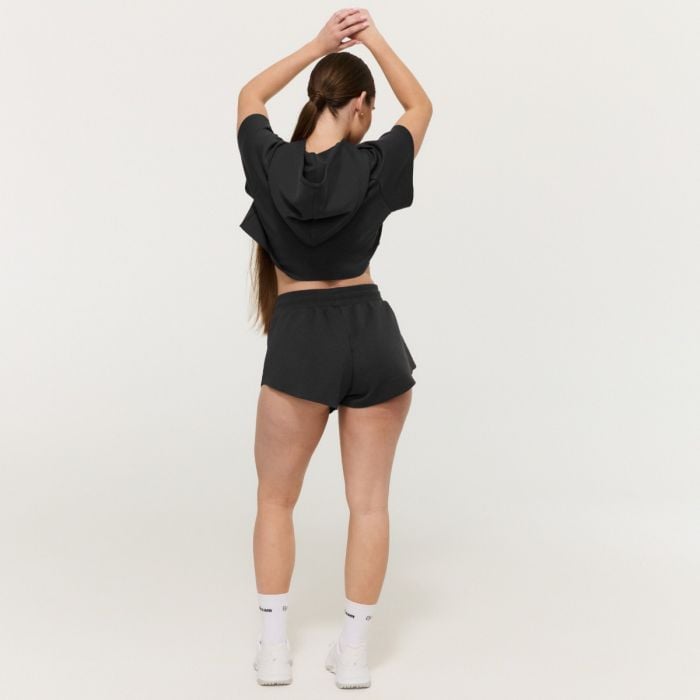 Tento model vyniká svým volným „flowy“ střihem, který působí velmi žensky a jemně. O vyzdvižení ženských křivek se postará i jejich středně vysoký pas s elastickou gumou, který si můžete přizpůsobit pomocí stahovací šňůrky. Šortky se středně vysokým pasem tak dobře drží a zároveň se díky svému volnému střihu bez kapes skvěle přizpůsobí každé postavě.