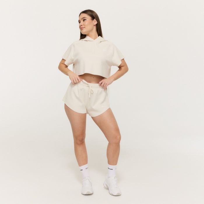 Tento model vyniká svým volným „flowy“ střihem, který působí velmi žensky a jemně. O zvýraznění ženských křivek se postará i jejich středně vysoký pas s elastickou gumou, který si můžete přizpůsobit pomocí stahovací šňůrky. Šortky se středně vysokým pasem tak dobře drží a zároveň se díky svému volnému střihu bez kapes skvěle přizpůsobí každé postavě.