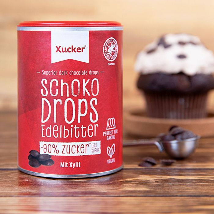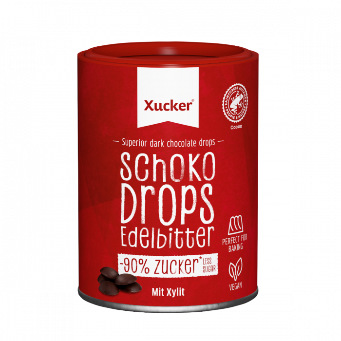 Dark Chocolate Drops jsou kousky tmavé čokolády bez přidaného cukru, které jsou slazené pouze xylitolem. Konzumace potravin obsahujících xylitol místo cukru vede k omezení nárůstu hladiny glukózy v krvi po jejich konzumaci v porovnání s potravinami obsahujícími cukr. Čokoládové kousky jsou ideální na pečení cookies, muffinů, koláčů, výrobu čokoládových polev, domácího müsli, ale hodí se i na ochucení kaše nebo jogurtu.