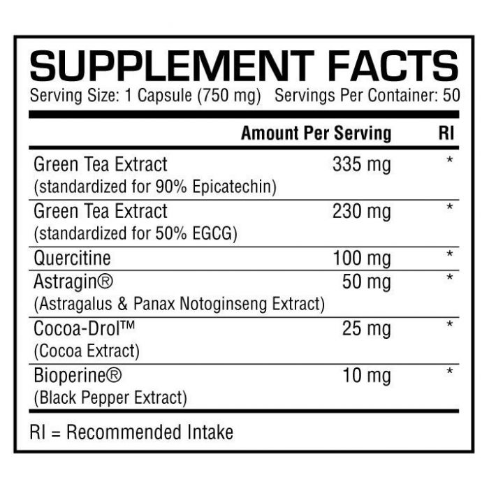 | Extrakt ze zeleného čaje (standardizovaný na 90% Epicatechin) | 335 mg |