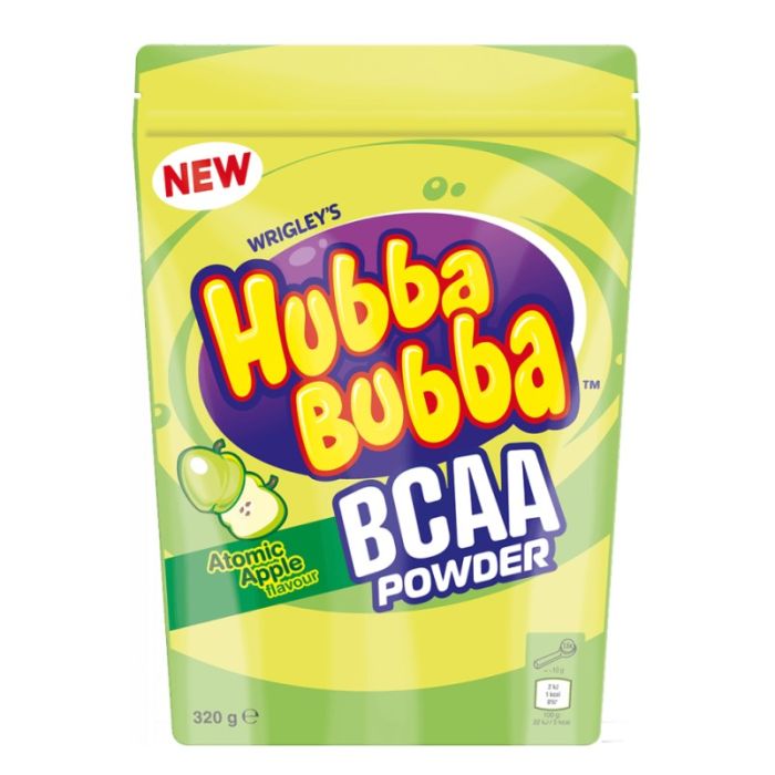 Hubba Bubba BCAA vám připomene dětství díky ikonické chuti žvýkaček Hubba Bubba. Jedná se o práškový doplněk stravy obsahující esenciální rozvětvené aminokyseliny, konkrétně leucin, izoleucin a valin, které si lidské tělo nedokáže samo vyrobit. Proto je nutné je přijímat prostřednictvím stravy nebo s doplňky stravy.