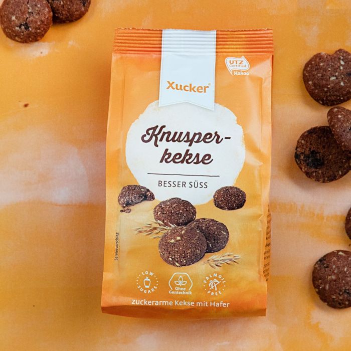Křupavé sušenky jsou lahodnou pochoutkou, která vznikla delikátním spojením ovesných vloček a jemné čokolády. Skvěle si je vychutnáte ke kávě, čaji nebo jen tak přes den. Křupavé sušenky se vyznačují nízkým obsahem cukru a jsou bez palmového oleje.