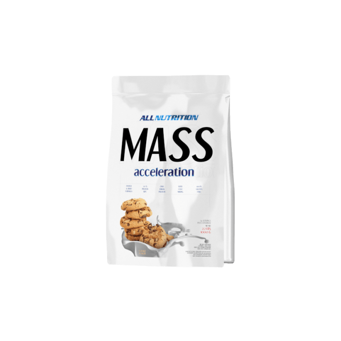 Mass Acceleration je komplexní zdroj sacharidů - obsahuje více druhů sacharidů s různou mírou absorpce, vstřebatelnosti, díky nimž je tělu efektivně dodávaná energie. Zajišťuje postupnou dodávku energie. V produktu je protein složený z čistého syrovátkového proteinového koncentrátu bez přídavků jiných méně hodnotných proteinů. Tím podporuje udržování a budování svalové hmoty. Mass Acceleration je určený všem osobám s aktivním životním stylem.