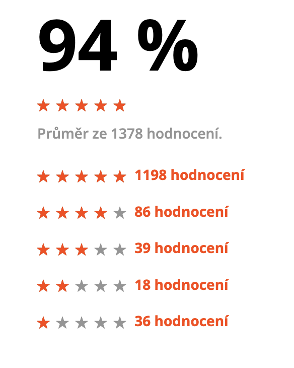 Toto procento představuje průměrné hodnocení kvality produktu získané ze všech ověřených recenzí, tedy od zákazníků, kteří nakoupili v našem e-shopu daný produkt přes svůj uživatelský účet.