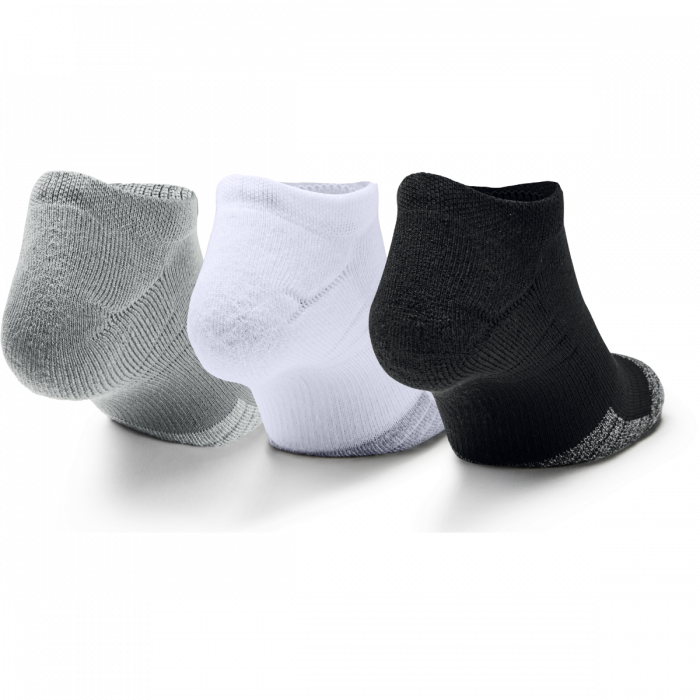 Ponožky Heatgear NS jsou vyrobeny ze 97% polyesteru a 3% spandexu. Výborně odvádějí pot a vlhkost, zabraňují vzniku a šíření bakterií, čímž eliminují nepříjemný pach. Jde o nízké pánské ponožky, které jsou vhodné na jakoukoliv sportovní aktivitu. V balení najdete 3 páry ponožek s logem Under Armour v šedé, bílé a černé barvě.