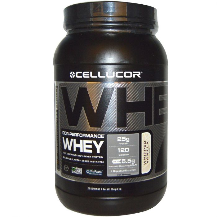 Cellucor COR- Performance Whey je syrovátkový protein, přesněji izolát syrovátkových bílkovin, které jsou velmi lehce stravitelné. V jedné odměrce obsahuje až 25 g bílkovin, aby tak zajistil dostatečný přísun bílkovin během celého dne. Díky tomu, že obsahuje 100% syrovátkových bílkovin, minimum tuků a sacharidů a s přídavkem trávicích enzymů je maximálně rychle rozpustný a extrémně chutný!