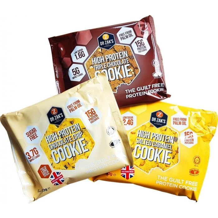 High Protein Cookie je proteinová sušenka, která nabízí až 15 g kvalitních bílkovin a může se pochlubit také velmi nízkým obsahem cukru. V Dr. Zak 's jsou si velmi dobře vědomi toho, jaké to v dnešním ,,busy" světě může být obtížné mít s sebou vždy jídla, která splňují vaše nutriční požadavky. Proto přinášejí na trh lahodné, měkké pečené sušenky, které nejen, že skvěle chutnají, ale zároveň mají i nepřekonatelné nutriční hodnoty. Navíc, tyto cookies ve srovnání s jinými sušenkami neobsahují palmový olej, a jsou dostupné ve více příchutích.