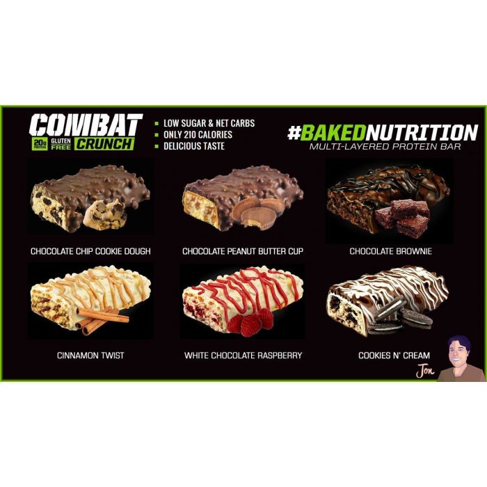 Combat Crunch je proteinová tyčinka vyrobená pomocí patentovaného procesu pečení pro lepší chuť a jemnější texturu. Tyto tyčinky obsahují vysoký obsah bílkovin s aktivními sacharidy a množstvím vlákniny. Combat Crunch neobsahují žádné levné zdroje bílkovin, pouze prvotřídní bílkoviny (syrovátkový proteinový izolát a mléčný proteinový izolát), mají vysoký obsah vlákniny, naproti tomu naopak nízký obsah jednoduchých cukrů, neobsahují žádné trans tuky ani lepek. Ideální svačina pro všechny, kteří hledají kvalitní proteinové tyčinky na doplnění denního příjmu bílkovin, navíc skvěle chutnají.
