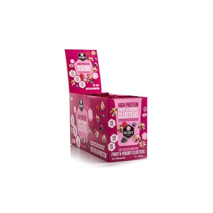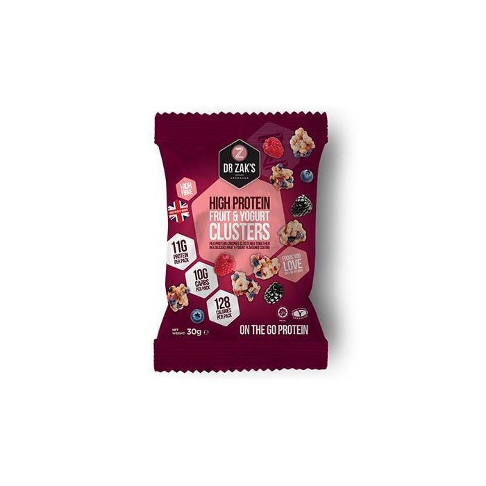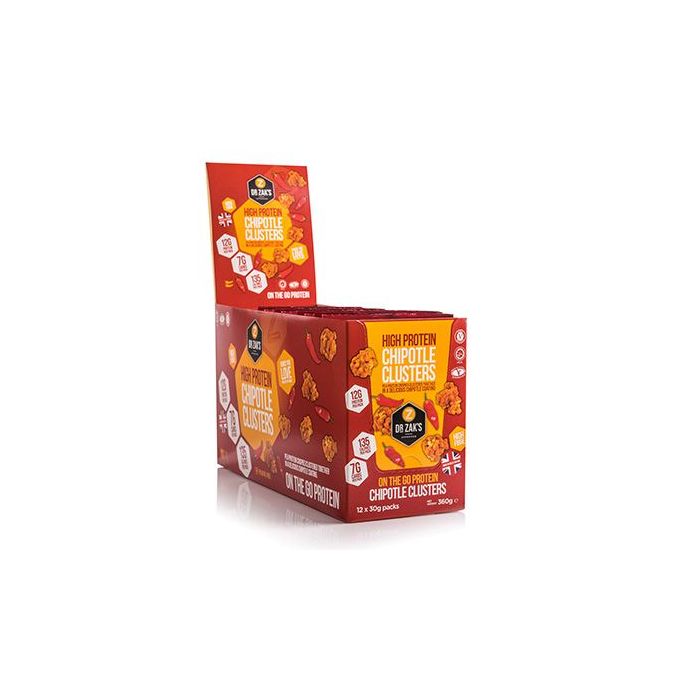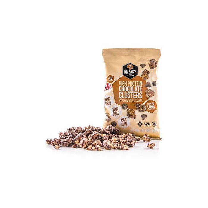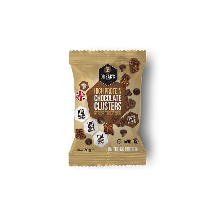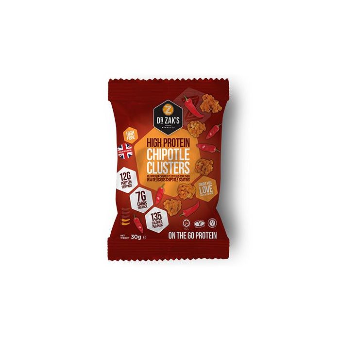 High Protein Clusters jsou proteinové bonbony s vysokým obsahem bílkovin, které jsou vhodné ke konzumaci kdykoliv během celého dne. Malé křupavé ochucené kuličky jsou bohatým zdrojem bílkovin - až 12 g bílkovin z hrachového proteinového izolátu v každém balení (úžasný 41% podíl bílkovin). Neobsahují palmový olej a jsou vhodné i pro vegetariány. V nabídce najdete tři příchutě, chocolate, fruit and yogurt nebo mimořádně pikantní chilli chipotle, ze kterých si určitě vyberete svou oblíbenou.