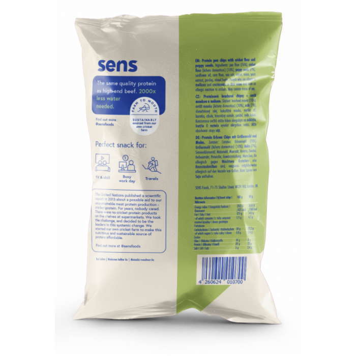 Proteinové hrachové chipsy se cvrččí moukou a mákem ocení každý, kdo rád objevuje nové chutě. Jedná se o křupavý snack s vyváženým nutričním složením, který vzniká použitím prémiových surovin přirozeného původu. Pyšní se vysokým obsahem bílkovin, které mají pozitivní vliv na růst a udržení svalů nebo zdraví kostí. Kromě toho mají tyto chipsy také vysoký podíl vlákniny. Ve výsledku se tak jedná o výbornou alternativu klasických chipsů.