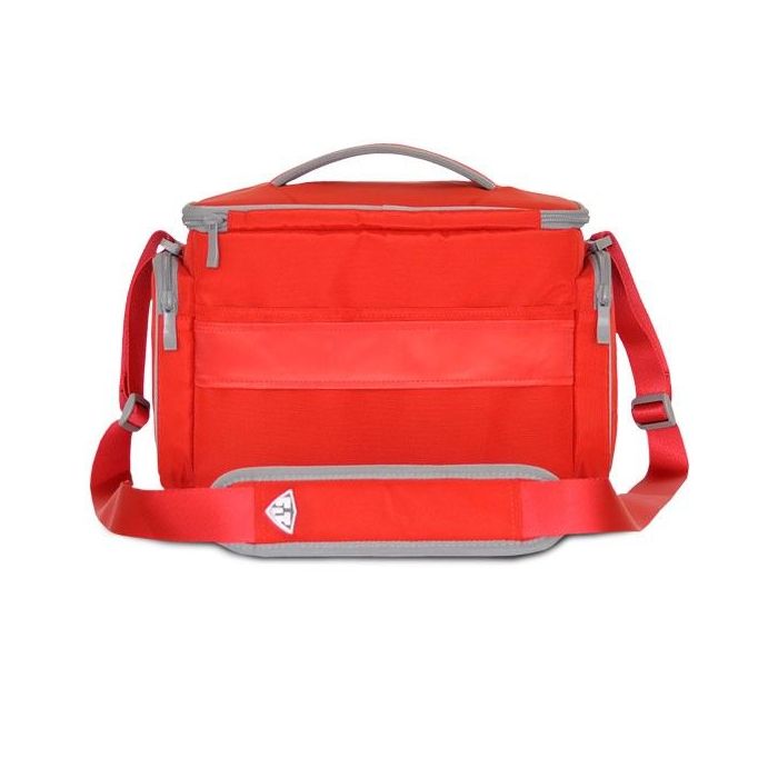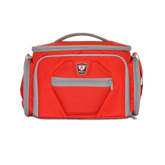 Sportovní taška na jídlo The Shield LG v červené barvě s pěkným designem, inovativními funkcemi a materiálem nejvyšší kvality. Je lehká, přenosná, vyrobená z pevného polyesterového nylonu. Obsahuje 5 velké boxy na hlavní jídlo, 2 chladicí gely, dávkovač na vitamíny, suplementy a proteinové nápoje, 2 inteligentní kapsy na láhev, proteinové tyčinky a ovoce. Udrží vaše jídlo čerstvé až 8 hodin.