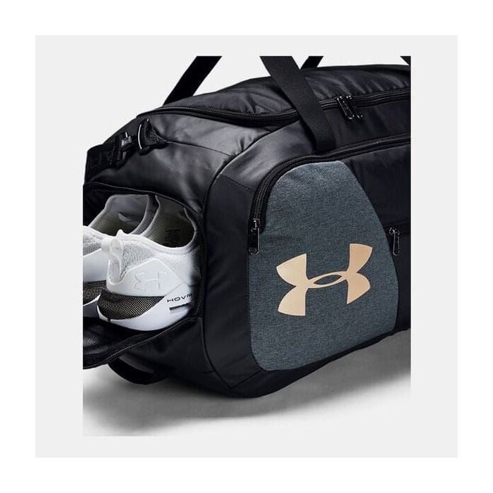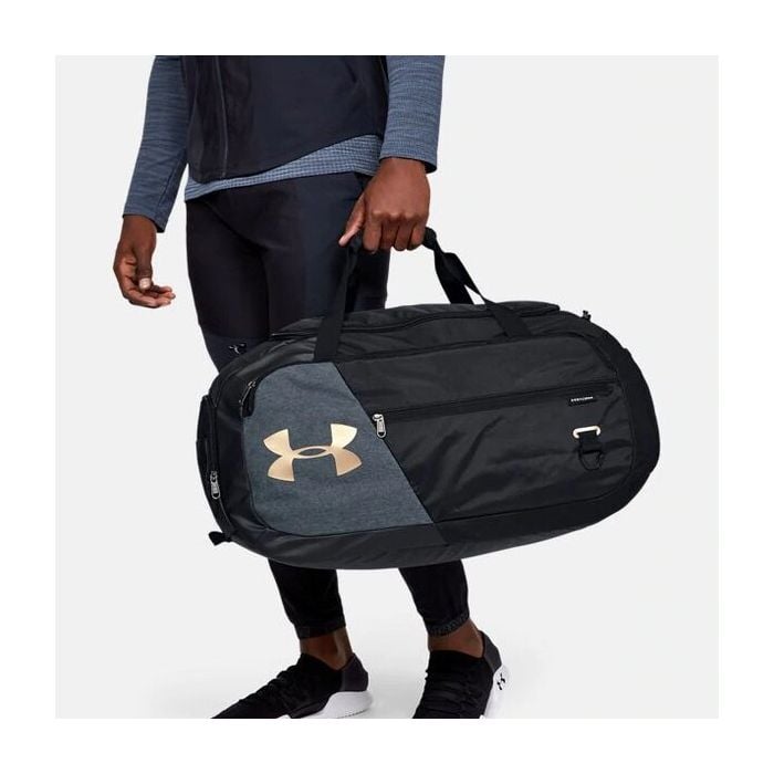 Sportovní taška Undeniable Duffle 4.0 SM je prostorná taška do fitka s voděodolnou úpravou Storm1 a tuhými výztuhami na dně a bocích. Obsahuje prostornou přední kapsu na zip, boční kapsu na zip s integrovanou kapsou například na obuv a vnitřní dokladovou kapsu. Má komfortní ručky na nošení a dlouhý nastavitelný popruh přes rameno.