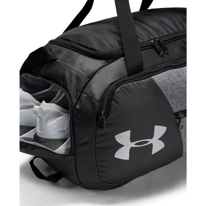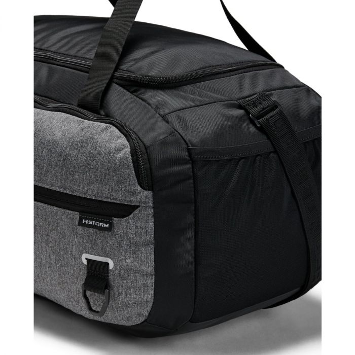 Sportovní taška Undeniable Duffle 4.0 SM je prostorná taška do fitka s voděodolnou úpravou Storm1 a tuhými výztuhami na dně a bocích. Obsahuje prostornou přední kapsu na zip, boční kapsu na zip s integrovanou kapsou například na obuv a vnitřní dokladovou kapsu. Má komfortní ručky na nošení a dlouhý nastavitelný popruh přes rameno.