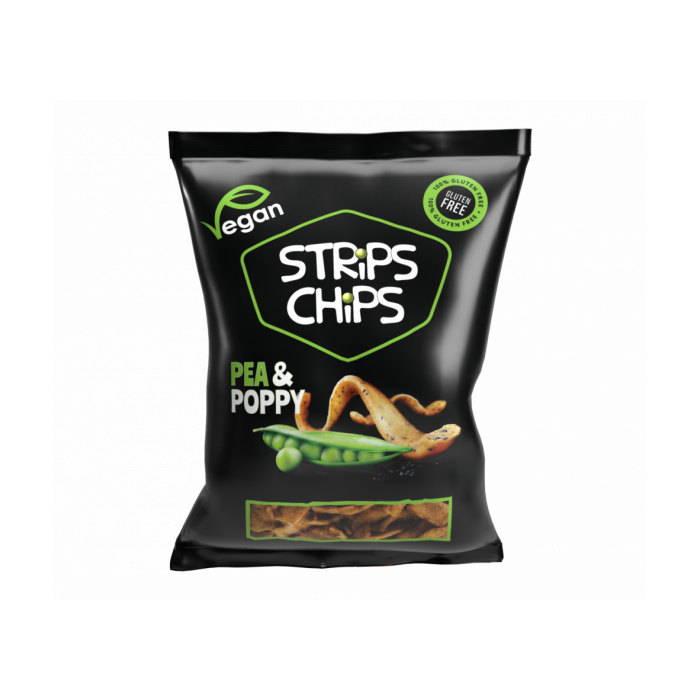 STRiPS CHiPS hrachové jsou křupavý snack z luštěnin a čistě rostlinných ingrediencí, který je skvělou alternativou smažených bramborových chipsů. Pyšní se bohatou nadílkou bílkovin, díky čemuž poslouží jako proteinový snack po tréninku nebo na doplnění energie. Mají vysoký podíl vitamínů, minerálů a vlákniny, ale naopak neobsahují konzervanty, barviva, ,,éčka" ani GMO a jsou vhodné i pro vegany.