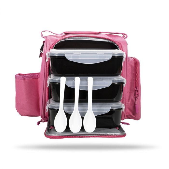 Taška na jídlo FIT Prep je kompaktní taška na jídlo, ve které se nacházejí 3 odolné plastové dózy s průsvitným víkem spolu se 3 lžícemi. Součástí tašky jsou i 2 gelové sáčky. Ty můžete využít k udržení chladu nebo tepla uvnitř tašky. Pro hřejivý efekt stačí gelový sáček vložit na pár minut do mikrovlnné trouby či teplé vody. Pro chladivý efekt doporučujeme sáček na pár minut vložit do mrazáku. Na levé straně tašky se nachází otevřený úložný prostor pro vaši láhev či šejkr. Na pravé straně tašky zase najdete prostornou kapsu na zip.