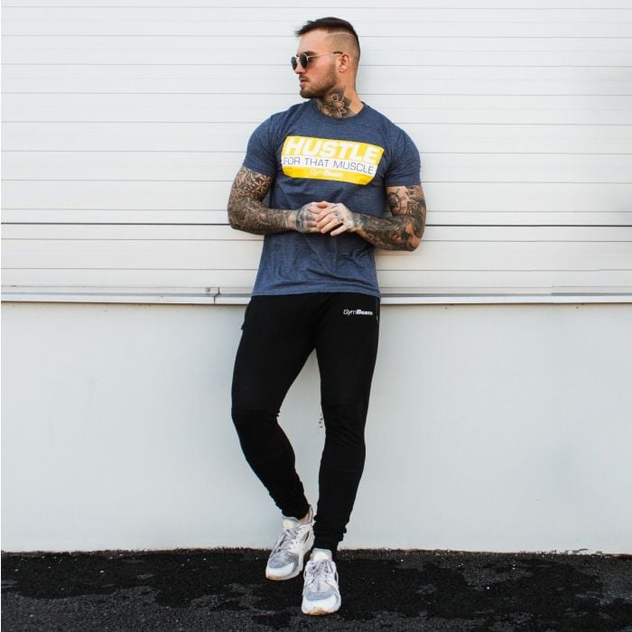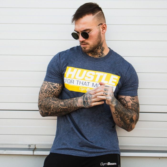Tričko Hustle For That Muscle Heather Navy je fitness tričko, které vás motivuje k budování svalové hmoty