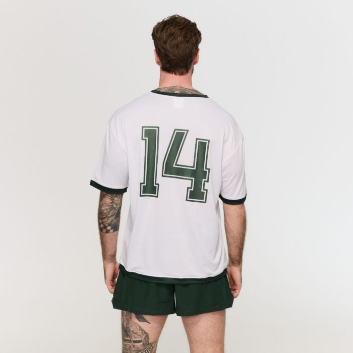 Tričko Oversized Varsity si zamilují všichni muži, kteří od svého oblečení vyžadují funkčnost, ale nechtějí dělat kompromisy ve stylu. Je vyrobeno z 92 % polyesteru a 8 % elastanu ve formě prodyšné síťoviny. S gramáží 180 gsm jde o funkční tričko na cvičení, které je neuvěřitelně lehké. Jeho hlavní výhodou je maximální prodyšnost a schopnost rychle schnout. Spolehlivě vás udrží v suchu a pohodlí, ať už zvedáte těžké váhy, nebo trávíte aktivní den venku.