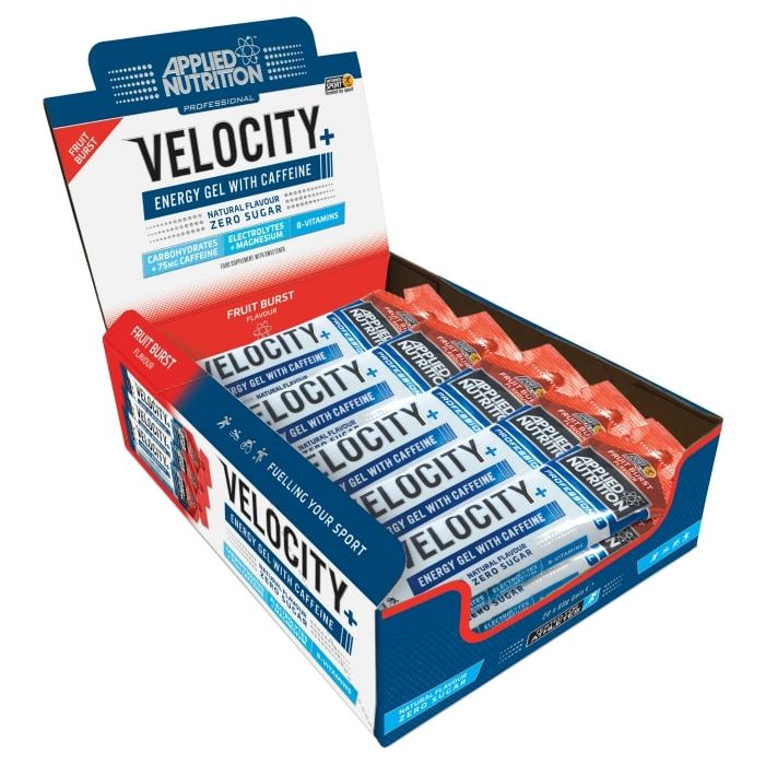 Velocity+ Caffeine Isotonic Energy Gel je směsí sacharidů (23,1 g), elektrolytů, minerálů, vitamínů B a kofeinu, kterou ocení zejména sportovci při svém tréninku. Hlavním sacharidovým zdrojem je maltodextrin, který vyniká svou rychlou vstřebatelností, díky čemuž je energie z něj pro tělo během chvíle dostupná. Abyste byli na výkon opravdu nabuzení, přidal výrobce do směsi i kofein. Výhodou je, že neobsahuje žádný zbytečný jednoduchý cukr, zato však ve složení najdete minerály či vitamíny. Můžeme jmenovat například vitamín B2, který přispívá ke správné látkové přeměně důležité pro tvorbu energie, ochraně buněk před oxidačním stresem či snížení únavy a vyčerpání. Vitamín B6 má pak zase vliv na správné fungování psychiky, imunity či regulaci hormonální činnosti. Svou roli má i vitamín B5, který přispívá ke zdravé duševní výkonnosti, či vitamín B12 se svým vlivem na správnou látkovou přeměnu homocysteinu, tvorbu červených krvinek či fungování imunity.