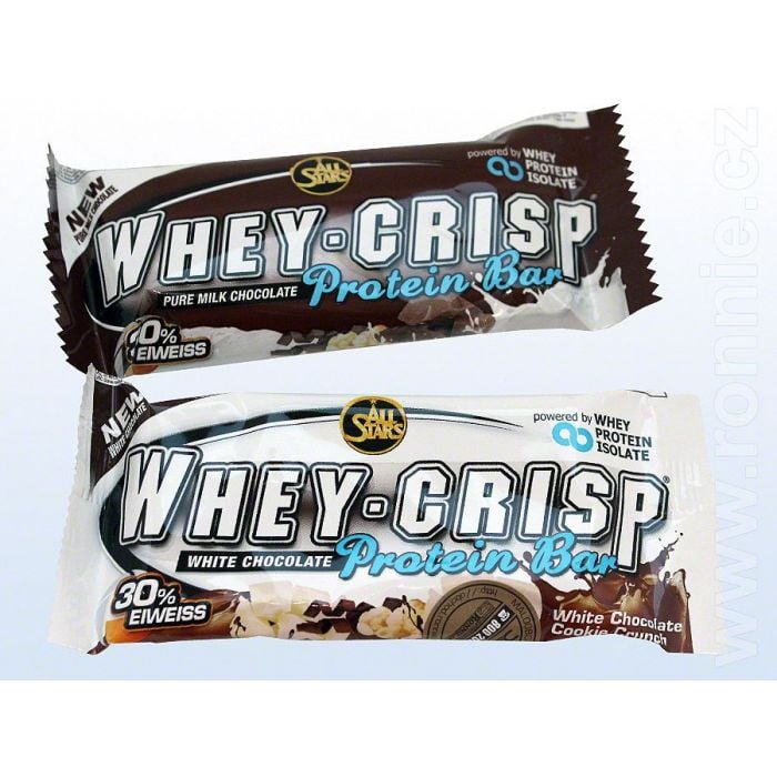 Whey-Crisp Protein Bar je chutná proteinová tyčinka s 30% podílem bílkovin z čistého syrovátkového proteinového izolátu. Tyčinka je politá lahodnou mléčnou čokoládou s kousky syrovátkových crispies. Je ideální volbou pokud se nacházíte na cestách, v práci, ve škole, nebo na poradě. Vyzkoušejte zdravé mlsání.