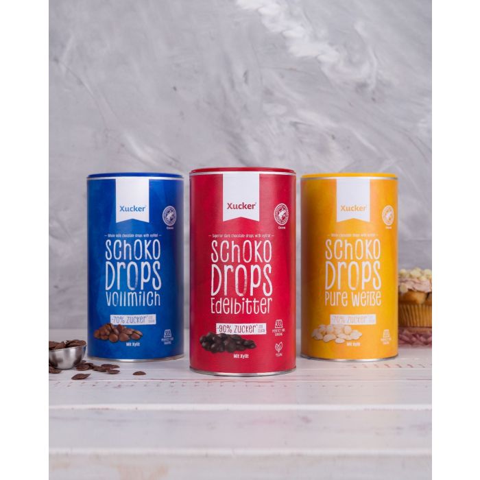 White Chocolate Drops jsou kousky bílé čokolády bez přidaného cukru, které jsou slazené pouze xylitolem. Čokoládové kousky jsou ideální na pečení cookies, muffinů, koláčů, výrobu čokoládových polev, domácího müsli, ale hodí se i na ochucení kaše nebo jogurtu.